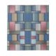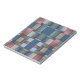 "Denim Patchwork" Un arreglo simétrico de rectángulos texturados, tipo tela, en tonos mudos de azul, verde, rosa y beige. La disposición se asemeja a un tejido o mosaico de mosaico de mosaico y cada bloque está meticulosamente alineado para crear una estructura equilibrada de forma similar a la de la cuadrícula.