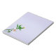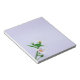 Delicadas flores rosas y blancas brotan desde la esquina inferior izquierda de la almohadilla de notas sencilla pero distintiva.
