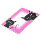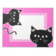 Divertido cartel con dos gatos negros de aspecto muy travieso. El color de fondo rosa es el personalizable.