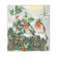 Vintage ilustracion navideño de dos pequeños ladrones sentados en una valla con bayas en la nieve.