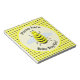 Este impresionante bloc de notas muestra una imagen gráfica de una linda abeja amarilla con piernas negras y ojos turbios. Tiene un cuerpo amarillo difuso con rayas negras y una bonita antena negra en su nublada cabeza. Sus delicadas alitas tienen un patrón azul pálido en el suelo. El diseño también incluye girasoles amarillo bonito. El texto es personalizable, por lo que puede incluir el nombre de su bebé hermoso y puede eliminarlo según corresponda para anunciar el sexo del bebé. El diseño es neutro desde el punto de vista del género, por lo que es adecuado para un niño o niña.