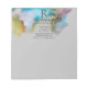 Marble elegant monogram business notepad with name, job description, address, phone number, fax, email, and web page information. The marble colors includes blues, purple, cream, green, with gold in a gray background.