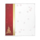 Moderno, elegante y festivo ilustracion de Navidades con un árbol de Navidad hecho de brillantes estrellas en un fondo rojo con copos de nieve y un borde dorado.
