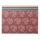 Un elegante Bloc de notas o Jotter, con motivos florales formalizados y rayas de tumbonas de color beige y azul oscuro sobre un fondo borgoñón.