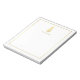Este elegante bloc de notas incluye su nombre, así como una elegante piña dorada y un borde a juego, sobre un fondo blanco.