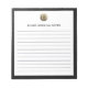 Eleva tus reuniones con nuestro Bloc de notas con logotipo en Personalizable. Cada página presenta un sofisticado logotipo de oro cepillado en la parte superior, con un encabezado de personalizable en tipografía negra atemporal. Las páginas blancas y alineadas están enmarcadas por un rico borde negro, creando un aspecto elegante y profesional. Manténgase organizado, saque puntos clave y mantenga sus reuniones en el buen camino con este elegante bloc de notas. Ideal para reuniones corporativas, conferencias y discusiones ejecutivas. Los pedidos masivos están disponibles sin ningún mínimo. Los descuentos masivos están disponibles; consulte los detalles aquí: https://www.zazzle.com/business/bulk.