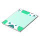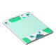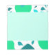 Este bloc de notas está bordeado por una variedad de hojas verdes y una parte central de color turquesa claro.
