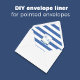 Este diseño fue creado en respuesta a varias novias que me preguntaron sobre los forros de envoltura de volante puntiagudo para que coincidieran con esta suite [los sobres de Euro Flap son los que tienen un punto profundo / agudo en la solapa]. Este es el estilo más utilizado en las suites nupciales de gama alta (y en la fotografía de diseño) ya que el sobre Euro Flap da un aspecto más romántico y menos formal a la suite. Después de comprar los sobres, necesitarás encontrar o hacer tu propia mueca o plantilla para los forros (varios están disponibles en línea pero como los sobres hacen muy poco te recomendaría probarlos antes de cortar todos tus forros). En cada uno de los cuatro lados hay una pequeña marca en el borde, que indica el punto central del escudo (para alinearlo con el sobre). Todos los elementos de acuarela fueron pintados a mano por mí antes de ser escaneados y combinados digitalmente.