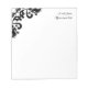 Almohadilla de notas adorable que se puede personalizar en blanco con un diseño de damasco negro en la esquina superior izquierda. Estos hacen grandes regalos.