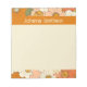 Este bloc de notas inspirado en el diseño de papel personalizado de 5.5x6, 70, brillante y alegre, incluye su nombre en un delicado y cursi tipo de letra vintage sobre un fondo naranja dorado con un riachuelo de ilustracion floral naranja. El área de escritura es un color de vainilla suave.