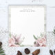 Rustic Farmhouse Rubor Flores rosas y el Bloc de notas de las pineconas con personalizable " de la mesa de " y plantillas de nombres. El borde presenta una textura de madera blanca y flores color agua rosado, brotes de pinos y pineconas.