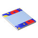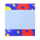 Este bloc de notas muestra un ilustracion basado en flores y pétalos redondeados en azul, rojo y naranja en sus bordes