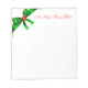Billete de personalizable blanco de 5,5" x 6" con la imagen de una cinta de satén verde de esquina con bayas rojas. Vea la colección de Navidades Notepad completa en la categoría OFFICE en la sección VACACIONES.