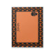 Patrón de arlequín vibrante de diamantes negros y naranjas con cráneos negros espeluznantes.