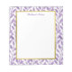 Una bonita adición a tu escritorio... Este bloc de notas personalizado está cubierto de hojas de arrastre morado claro con un borde metálico de oro. El texto se puede cambiar, agregar o quitar. ¡Hace un gran regalo o un obsequio de medias! Por favor, asegúrese de visitar mi tienda para ver otros productos y diseños, y asegúrese de seguirme para actualizaciones de nuevos productos! ¡Gracias por su interés en SapphireDesigns!