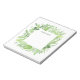 Este moderno y elegante bloc de notas presenta un marco central de hojas de color verde acuático.