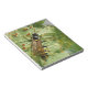 Este impresionante bloc de notas muestra una fotografía de primer plano de una mosca de color negro y amarillo sobre una hoja hollyhock. La foto fue tomada usando la fotografía macro para revelar todos los pequeños detalles como las venas de hojas en el hollyhock y el patrón en las alas de la mosca.