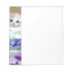 ¡El Bloc de notas tiene un gatito blanco esponjoso! El gatito de ojos azules se sienta en un tazón azul con flores rosas. Una manta morada con flores está cubierta por delante. Un regalo maravilloso para los amantes del gato y del arte victoriano.