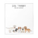 Diseñado con entrenadores de perros, mascotas y otros trabajos para perros en mente presentando el ilustracion original de Destei de cinco tipos diferentes de perros. Hay un Cavalier blenheim King Charles Spaniel, una miniatura de albaricoque Goldendoodle, bulldog francés flautista, crema inglesa Labrador Retriever y un Dachshund de cabello suave negro y marrón. También hay dos áreas de texto personalizables en la parte superior.