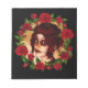"The Scarlet Sugar Doll", una figura cautivadora adornada con el maquillaje inspirado en el Día de los Muertos, enmarcado por una corona de rosas criminales en plena floración. Su mirada es a la vez feroz y tierna, simbolizando el delicado equilibrio entre la mortalidad y la gracia. Rodeada de pétalos vibrantes y hojas verdes profundas, esta obra de arte celebra la belleza intemporal de la muñeca de azúcar — audaz, sagrada y siempre floreciente.