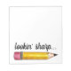 Features an original marker illustration of a sharp yellow #2 school pencil with a pink eraser, and LOOKIN' SHARP in a fun font.