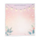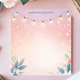 Crea una atmósfera mágica y acogedora con esta libreta personalizada. Delicadas luces de cadena cuelgan en la parte superior, con sutiles acentos florales y de follaje a lo largo de la parte inferior, creando un borde encantador. El suave fondo pastel realza el efecto cálido y centelleante. Agrega tu propio texto para personalizar esta libreta. Perfecta para notas nocturnas, recordatorios o mensajes sinceros.