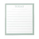 Modern Mint Green Frame TODAY To Do List Notepad with lines es muy moderno y minimalista. Bajo el título HOY tienes una línea más corta para añadir un pensamiento, tu nombre o escribir la fecha. Para su comodidad, la lista tiene líneas definidas para mantener la escritura a mano en línea.