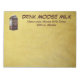 Cartón de leche de la mundialmente famosa y mítica granja lechera Matanuska Moose Milk en Willow Alaska; no muy lejos de Anchorage. También aparece el lema "Beba leche de alce". La imagen del logo muestra a una sirvienta ordeñando a mano a Matilda, la primera alce lechera de la granja. Puede elegir un color de fondo. Créanlo o no, hay moras de alce; un pequeño número en Rusia y uno en Suecia. La leche de alce se cultiva comercialmente en Rusia. Un ternero de alce nacido en una granja es tomado de su madre en las 2-3 horas siguientes al nacimiento y es criado por la gente. Primero se alimenta con una botella de un sustituto de la leche y después se alimenta de un cubo. Los animales se imprimen y se unen a los humanos. La leche es alta en materia de grasa butírica (10%) y sólidos (21,5%), según datos recogidos en alce ruso; la investigación sobre la leche de alce estadounidense está en un estado menos avanzado que en Rusia, pero parece indicar que el alce estadounidense tiene concentraciones aún mayores de sólidos en su leche. Se dice que la leche de alce es un poco salada y amarga; con un toque de pino o agujas picantes. La leche de alce se cultiva comercialmente en Rusia. Un ternero de alce nacido en una granja es tomado de su madre en las 2-3 horas siguientes al nacimiento y es criado por la gente. Primero se alimenta con una botella de un sustituto de la leche y después se alimenta de un cubo. Los animales se imprimen y se unen a los humanos. Al igual que con el ganado lechero, los terneros son retirados de sus madres después de un corto tiempo. Los rusos dicen que Moose pronto reconoce a las sirvientas como su sustituto como sus terneros sustitutos. En este punto son liberados al bosque; pero visitan la granja todos los días para ser ordeñados durante el periodo de lactancia (normalmente, hasta septiembre u octubre). Durante el invierno, los animales deambulan libremente por el bosque circundante. Pero por lo general no se alejan demasiado, sino que pasan gran parte de su tiempo en los bosques cercanos donde se talan árboles, alimentándose de los subproductos de las operaciones madereras. Y conocen la granja como el lugar para raciones diarias de avena, y como un lugar seguro para dar a luz a sus hijos pequeños. Un sanatorio ruso sirve leche de alce a los residentes en la creencia de que les ayuda a recuperarse de la enfermedad o a manejar las enfermedades crónicas de manera más efectiva. Algunos investigadores rusos han recomendado que se utilice leche de alce para la prevención de enfermedades gastroenterológicas en niños. Se cree que la granja Elk (Moose se llama Elk in Europe) House (Älgens Hus) en Bjurholm, Suecia es el único productor mundial de queso de alce. El queso se vende por unos 500 dólares por libra. El restaurante del Algens Hus ofrece platos de queso de oso. Queso liso con pan o galletas, o mejor aún, mousse de alce congelado. Mejor servido con frambuesas.