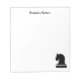 Notas de escritura de ajedrez en blanco y negro personalizadas para los amantes del ajedrez, el gran maestro y otros jugadores del juego. Almohadillas de notas de personalizado con icono y nombre de caballero. Diseño de toallas de memoria personalizadas para casa, club, escuela u oficina. Suministros escolares y de oficina para hombres, mujeres y niños. Color del fondo del personalizable. Idea de regalo para papá, profesor, mamá, amigo, entrenador, etc. También disponible en papel de papel.
