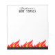 El fuego rojo personalizado enciende el tema caliente escribiendo notas para casa o trabajo. Almohadillas de notas personalizados con llamas y nombre. Diseño de toallas de memoria personalizadas para casa, club, cocina, escuela u oficina. Suministros escolares y de oficina para hombres, mujeres y niños. Color del fondo del personalizable. Idea de regalo para papá, profesor, chef, dueño de restaurante, mamá, amigo, compañero de trabajo, jefe, colega, etc.