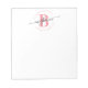 Girly, moderno, elegante, minimalista blanco y rosa rubor, monograma nombre inicial personalizado de escritura monogramado personalizado Notepad. Con un primer monograma y un guión de firma de nombre ondulado en un tipo de letra caligrafía con letras a mano con cruces y marco de círculo punteado alrededor de tu monograma. Perfecto para los suministros profesionales femeninos de oficina en el hogar, universidad universitaria de vuelta a la escuela, trabajo profesional, cumpleaños, boda, ducha de novias, dueños de salones de belleza, o a cualquiera que le guste el estilo minimalista elegante del bonito.