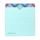 Moda Tartán Personalizado Script Monograma Bloc de notas en cián Elegante, moderno y de moda personalizable noepad cuenta con "monograma personalizado" en acero metálico, tartán rosa / azul trenzado en la parte superior y "notas de nombre personalizadas" en la parte inferior de fondo liofilizado ciano. Personalice este encantador bloc de notas como un regalo maravilloso añadiendo su nombre o texto / cambiando el tipo de letra, color, tamaño y posición.