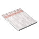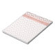 Añada un accesorio elegante y personalizado a su escritorio con este bloc de notas moderno de moda. El diseño presenta un patrón de chevron zig-zag de Relieve metalizado de oro rosa de color rosado y su nombre u otro texto personalizado en una tipografía simple de color gris oscuro. Este elegante y moderno panel metálico le da un regalo elegante.