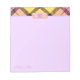 Moda Personalizado de Tartán Rosa Monograma Nombre Bright Lilac Notepad personalizable moderno, ondulado y a la moda notepad con "monograma personalizado" en la placa rosa de coral, tartán rosa / amarillo en la parte superior y "notas de nombre personalizadas" en la parte inferior sobre fondo lila brillante. Personalice este encantador bloc de notas como un regalo maravilloso añadiendo su nombre o texto / cambiando el tipo de letra, color, tamaño y posición.