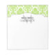 Elegante, llamativo diseño de damasco verde en el fondo, con un marco elegante. Personalízalo con su nombre y monograma.