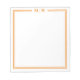 Cuaderno de notas con monograma minimalista en naranja y blanco.
