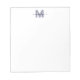 Cuaderno de notas con monograma de letra script minimalista en azul marino y blanco.
