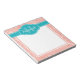 Bloc De Notas Monograma Verde azulado del patrón de mármol blanc