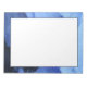 Una hermosa acuarela azul montañosa bordeada por un tabique.