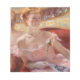 Este diseño presenta una pintura de la artista estadounidense Mary Stevenson Cassatt. Muestra a una dama sentada en una elegante silla roja en el Paris Opera House; ella lleva un elegante vestido rosa y guantes blancos. Detrás de ella hay un espejo que refleja la espalda de la mujer y la escena delante de ella, mostrándonos así su opinión. Mary Cassatt tuvo mucho cuidado al tratar de capturar los sutiles efectos de la iluminación artificial en los tonos de piel. El estilo, con colores brillantes y rápidas pinceladas, parece estar fuertemente influenciado por el movimiento impresionista. La pintura original se terminó en 1879 y pertenece al Museo de Arte de Filadelfia, en el estado americano de Pensilvania.