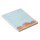 Un bloc de notas de bonito con flores de amapola naranja brillantes pintadas con acuarela sobre un suave fondo azul texturado.