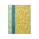 Un bloc de notas o cuaderno grande y personalizable, con un patrón de narcisos dorados, de un diseño de acuarela pintado a mano por Judy Adamson, combinado con un patrón de gingham verde a cuadros coordinado. Parte de la colección "Daffy-down-Dillies" de Posh & Painterly.