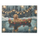 Podrá navegar por la magia de la temporada de vacaciones con este bonito ilustracion, que muestra a un orgulloso perro sentado en un barco decorado con gusto, deslizándose a través de un tranquilo lago de Navidades. Las luces de los pinos cercanos reflejan el agua, lo que aporta un resplandor cálido y festivo que realza el ambiente acogedor. Los adornos se deslizan por los lados del barco, mientras que los farolillos brillan por el camino, creando una escena que capta la verdadera esencia del calor y la alegría de los Navidades. Esta obra de arte nostálgica aporta un toque de magia navideña a cualquier espacio, perfecto para los que aprecian el espíritu de la temporada.