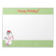 Notepad con mi diseño original de un muñeco de nieve sonriente usando gafas de sol, sosteniendo un caramelo de caramelo y dándole propina a su gorra mientras le deseaba a todos "¡Felices Fiestas!"