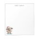 Un ilustracion dulce de una oveja pequeña, todo listo para el invierno, con un sombrero de santa puesto, en el fondo a la izquierda del bloc de notas. En la parte superior, en tipografía gris oscuro, puedes personalizar con tu propio nombre. Un regalo encantador para alguien, o un divertido agregado a su propio escritorio.
