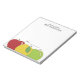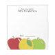 El bloc de notas personalizado del profesor se acentúa con un colorido trío de manzanas. Amplio espacio de escritura y texto editable.