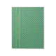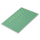 Un Notepad o Jotter de diseño para personalizar, con un patrón de tendencia verde claro (Tiros de licitación) y azul oscuro (Azul de Mónaco) de polka de diferentes tamaños sobre un fondo verde esmeralda.