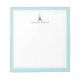 Añade un toque de París a tu escritorio. Sencillo y moda, nuestro boletín de notas personalizado incluye su nombre o monograma coronado por un pequeño ilustracion de silueta de la torre Eiffel dibujado a mano en negro, enmarcado por un borde verde marino pastel.