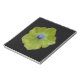 Este impresionante bloc de notas muestra una fotografía de una flor de petunia que ha sido manipulada para hacer que el centro de la flor brille azul brillante. El resto de la flor es de un verde frondoso color. El fondo es negro para realzar los colores de la flor.