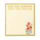 Capture your thoughts with charm and grace using this elegant cream notepad, beautifully framed in gold and adorned with a delicate wildflower arrangement of red, orange, and purple blooms with soft greenery in the bottom corner. The customizable header reads “Notes • Ideas • Suggestions from your mother”—perfect for gifting to moms or personalizing for your own use. All text areas can be fully customized, allowing you to change the wording, font, or color to suit your personal message or branding. A timeless and thoughtful addition to any desk, kitchen counter, or family command center.